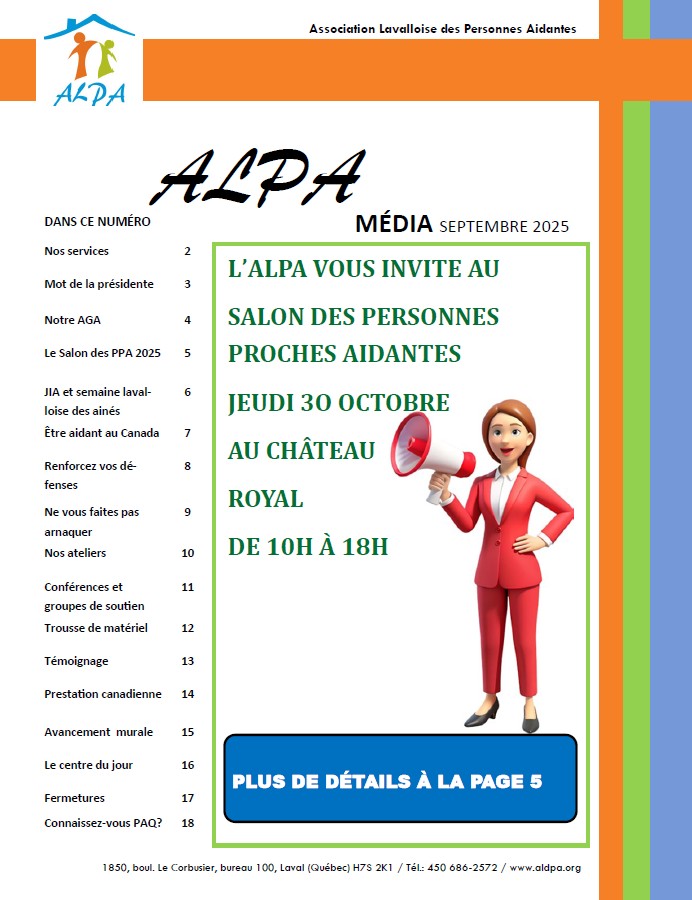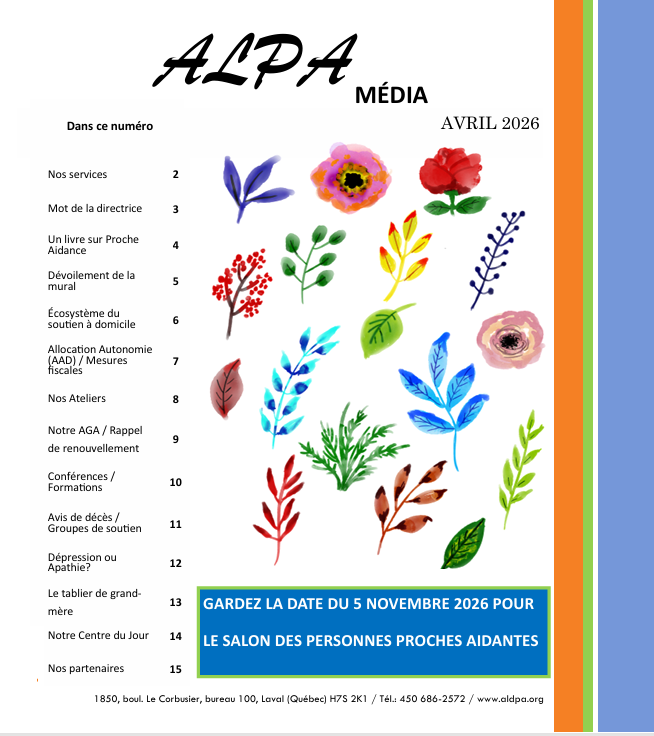 L’ALPA est présente pour soutenir, informer, accompagner et sensibiliser la population à la réalité des proches aidants.